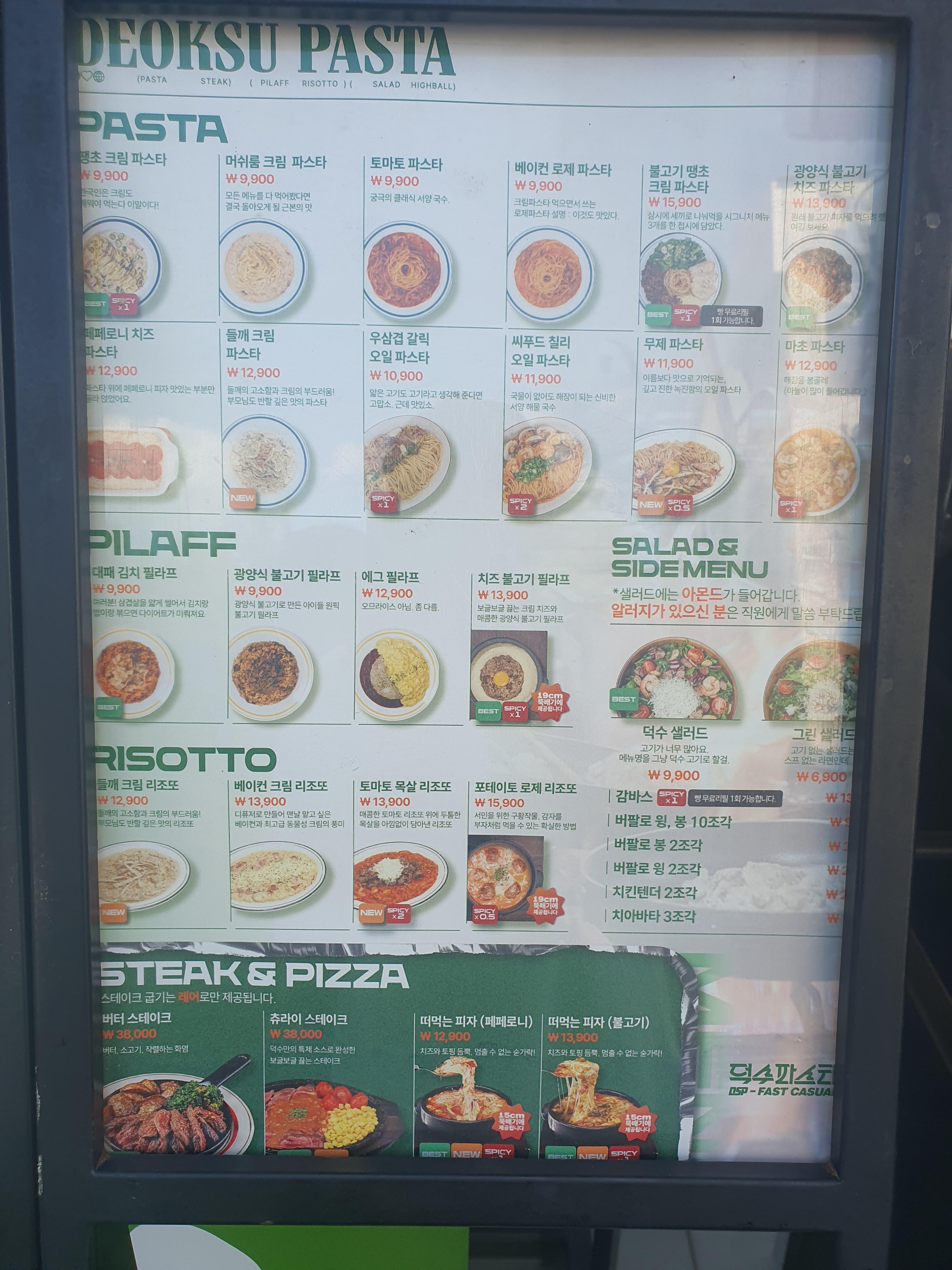 이곳은 스테이크, 파스타, 리조토, 필라프, 떠먹는 피자, 샐러드까지 메뉴가 폭넓었습니다.