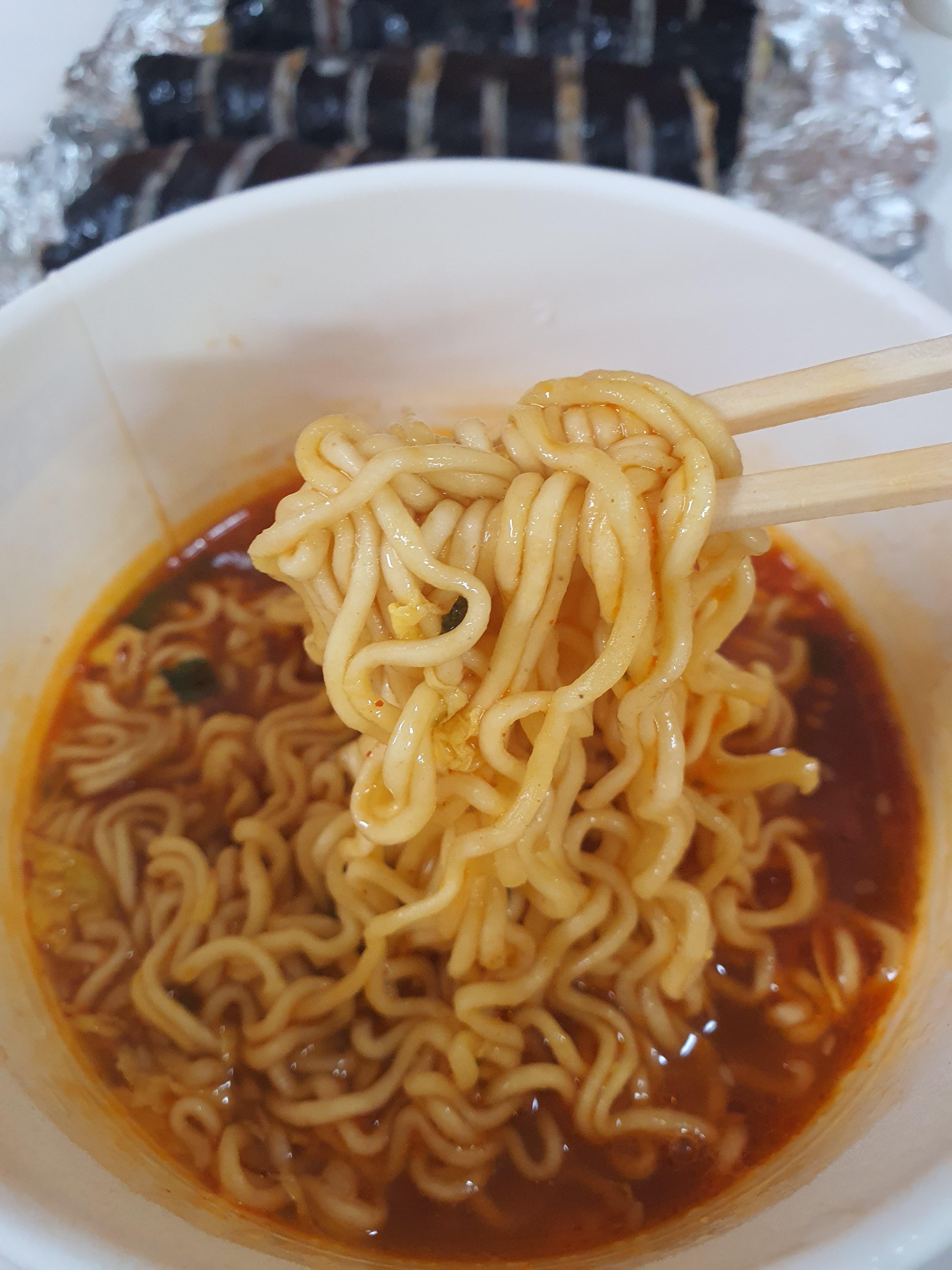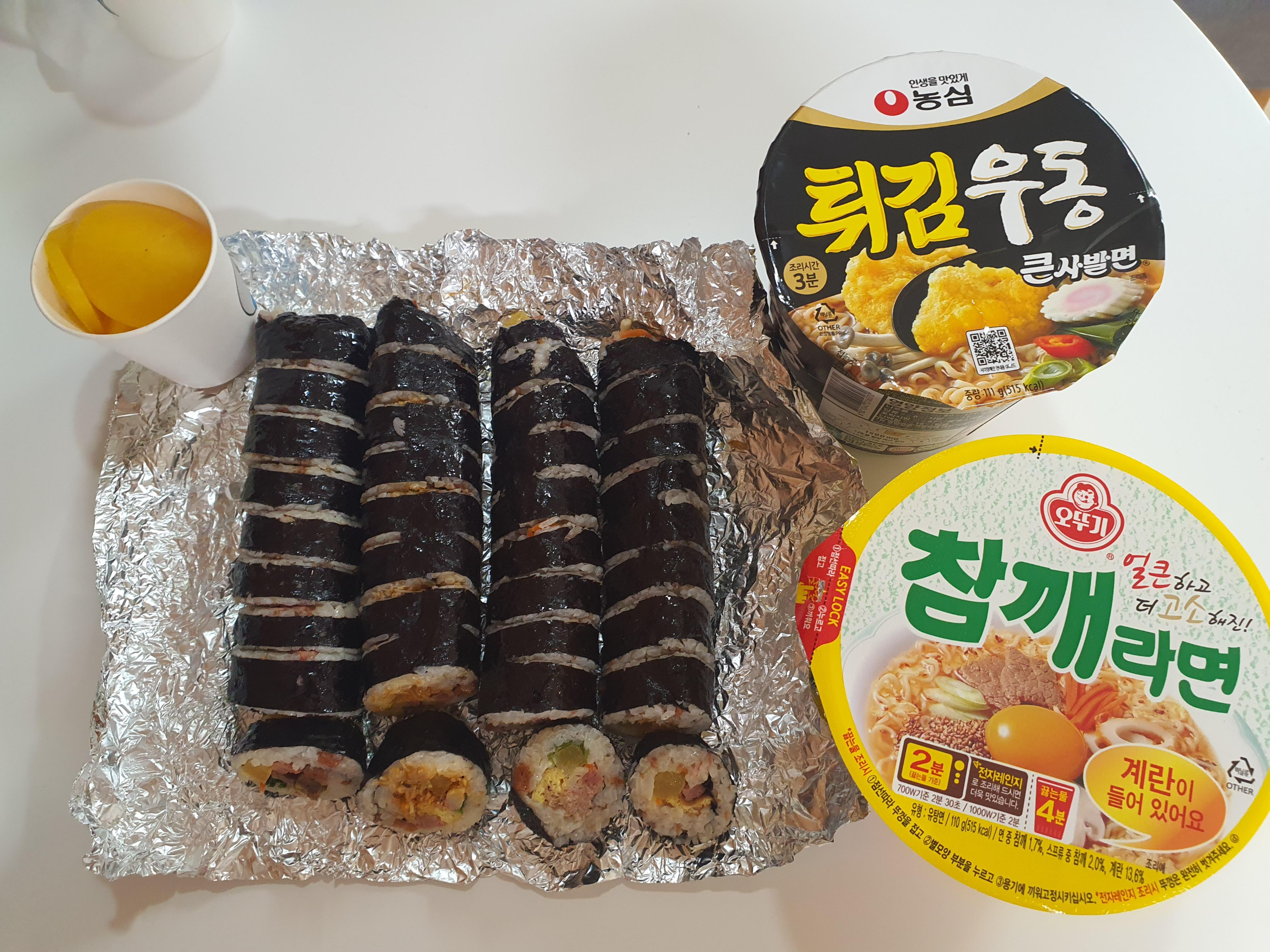 참깨라면에 푹 찍어서 먹는 오는정김밥