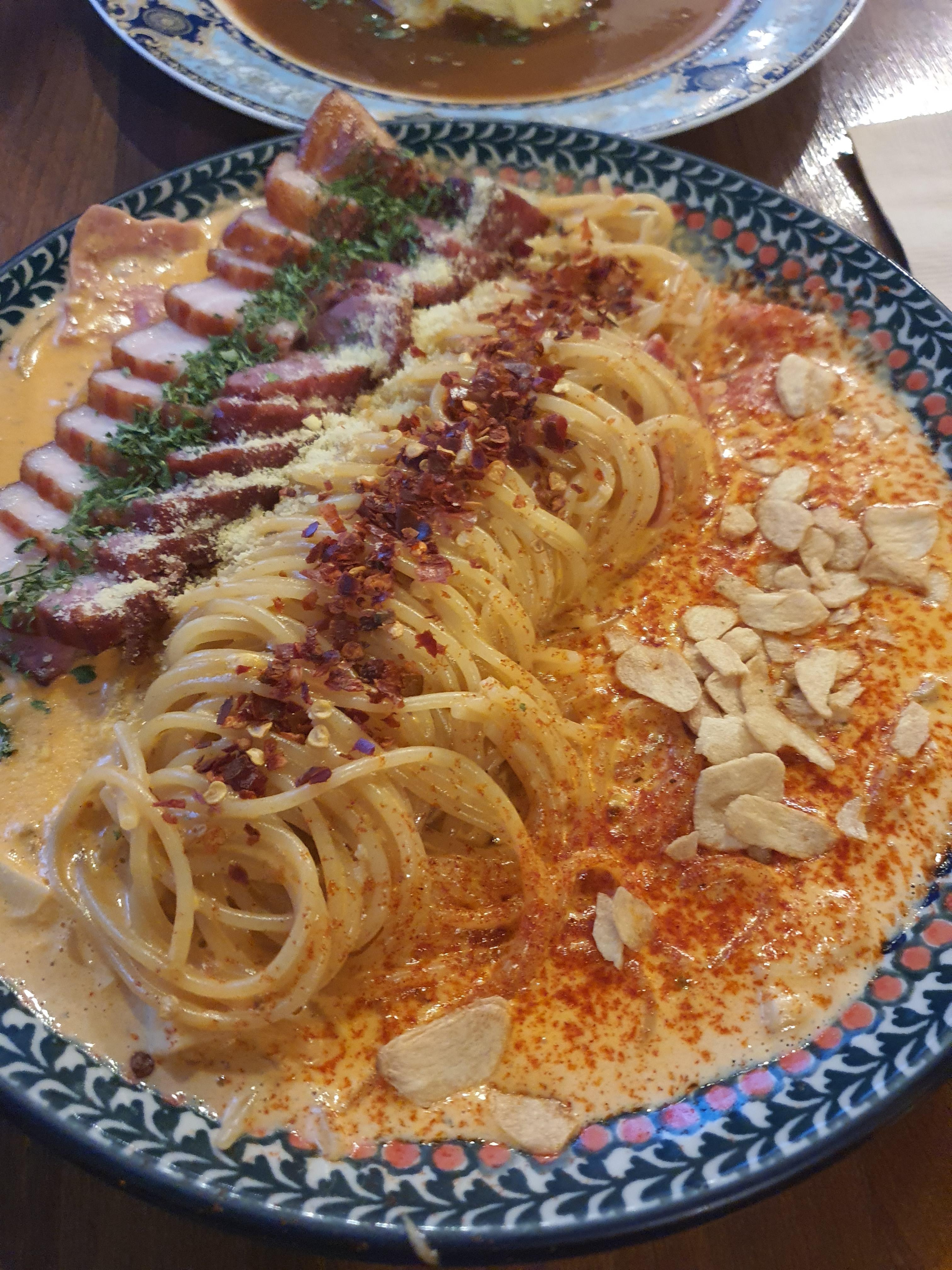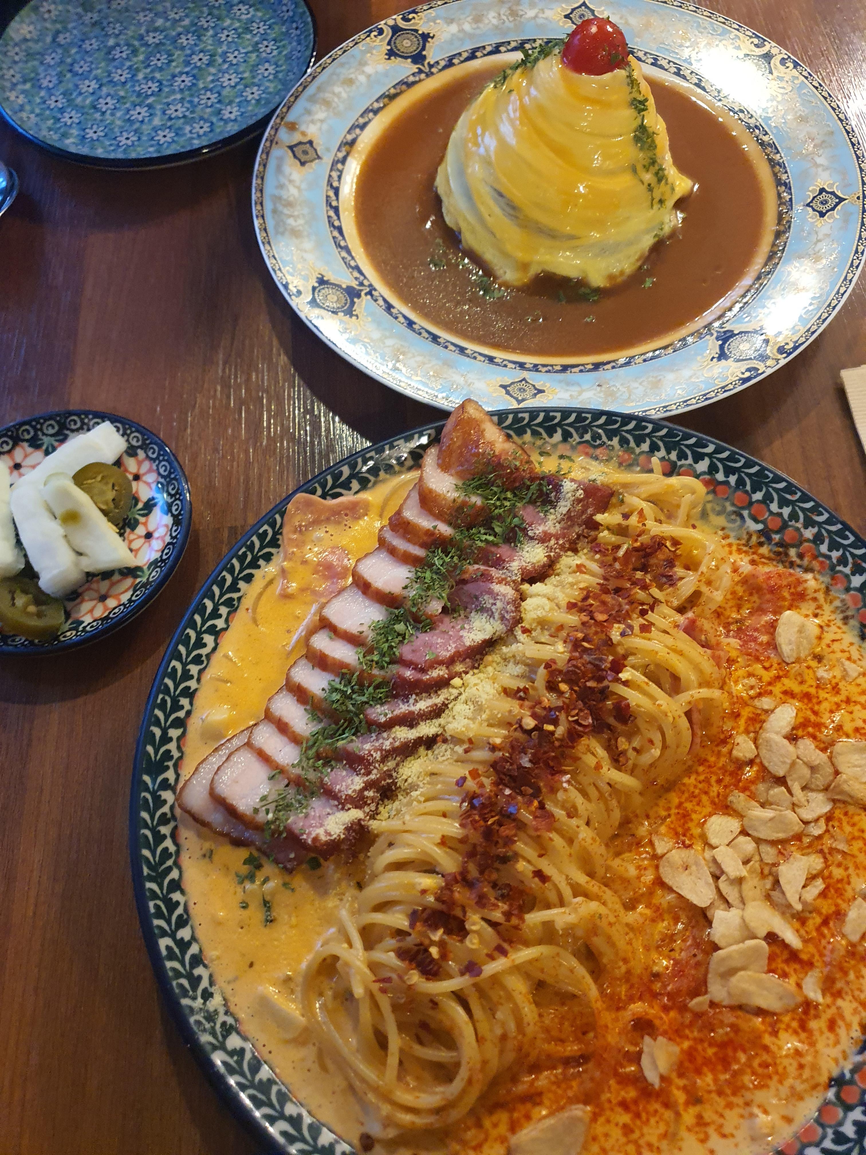 저는 통삼겹 로제 파스타와 회오리 오므라이스 이렇게 주문해서 먹었습니다. ㅎㅎ