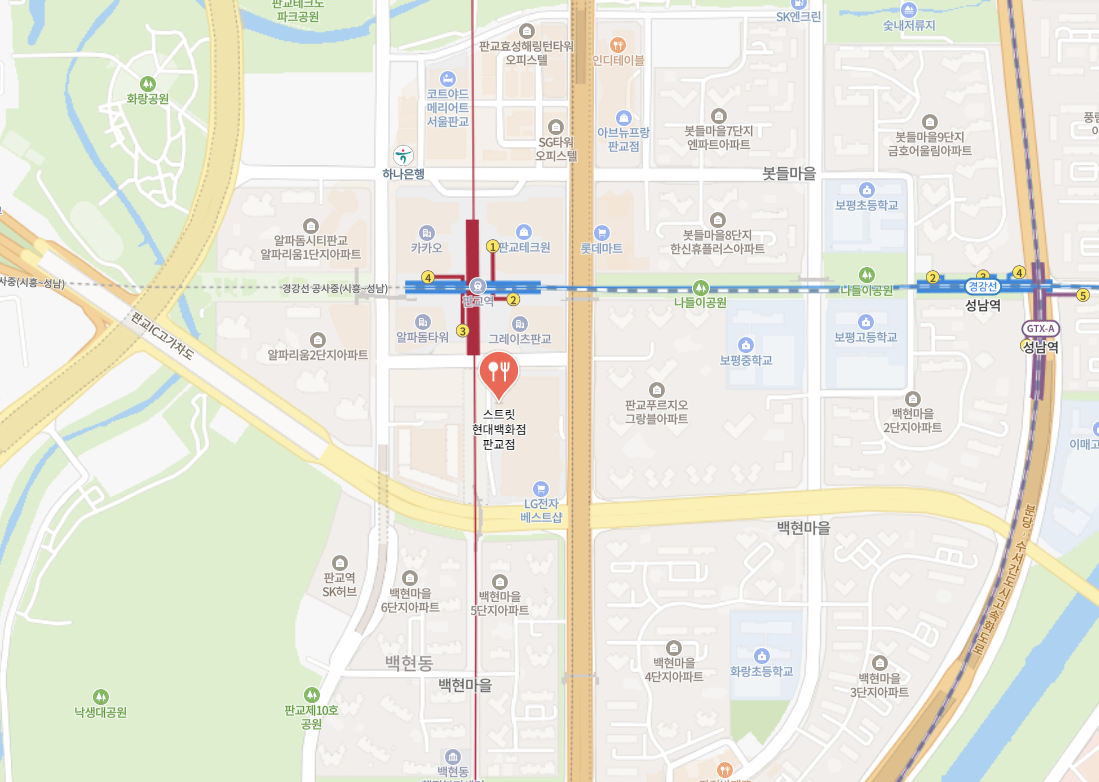 주소 : 경기 성남시 분당구 판교역로146번길 20 (백현동) 현대백화점 판교점 지하 1층 스트릿입니다.