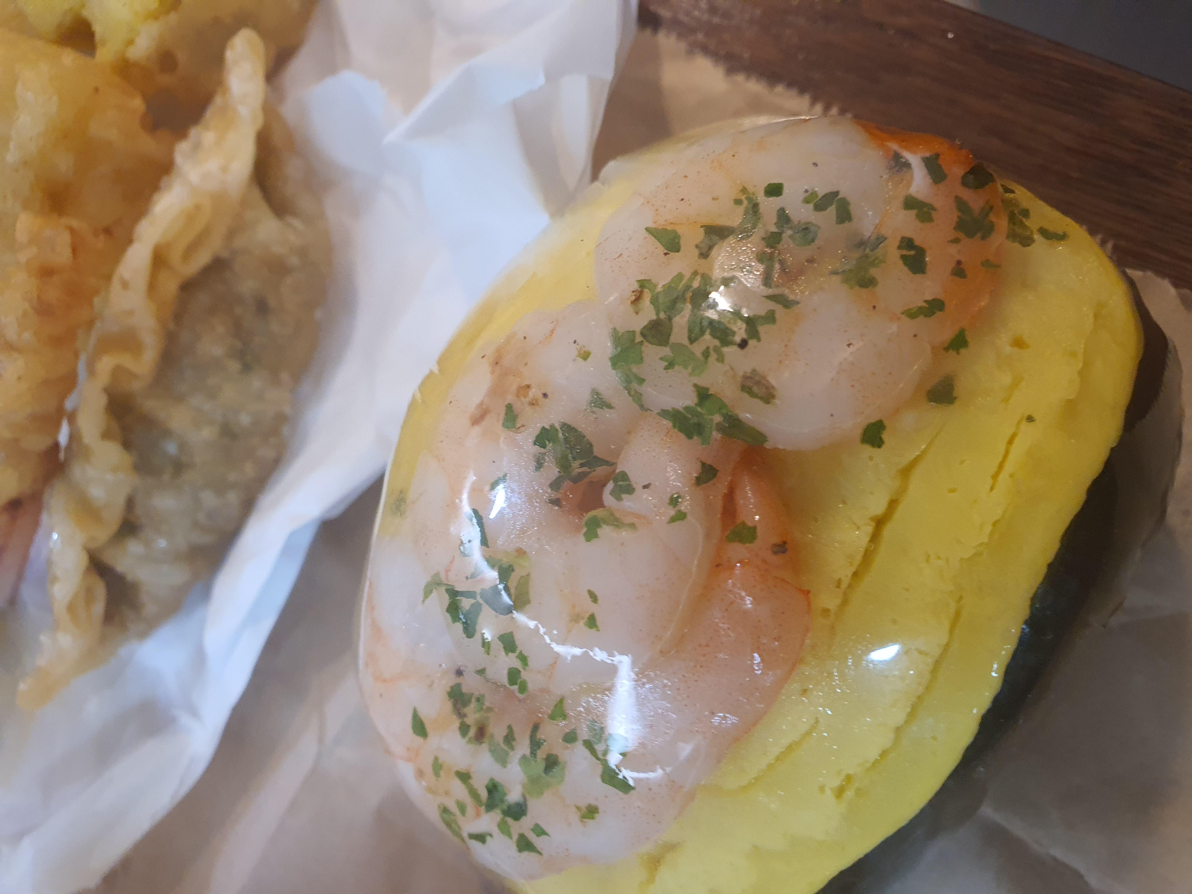 그 위에 노릇하게 구워진 새우가 착 붙어있는데,